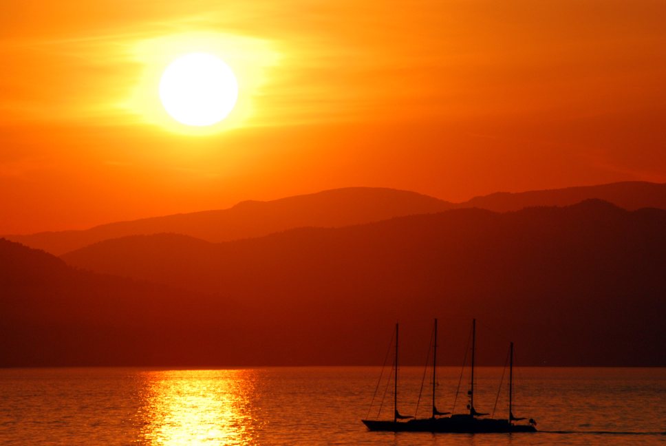 Here is a Quicktime movie of this sunset capturing the boat and the green flash afterward. |