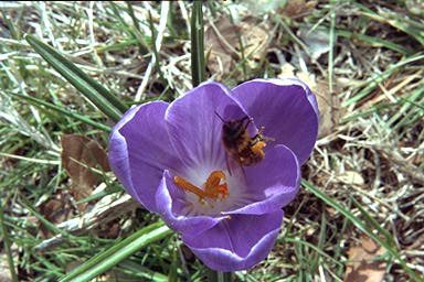 | Another bee, heavy with pollen, on a crocus |