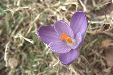 | A crocus that appears 3-D because of the narrow depth of field |