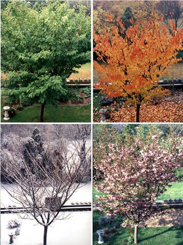 | A Cherry tree photographed during the 4 seasons . |