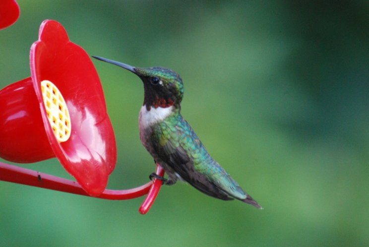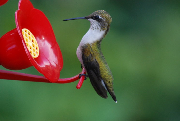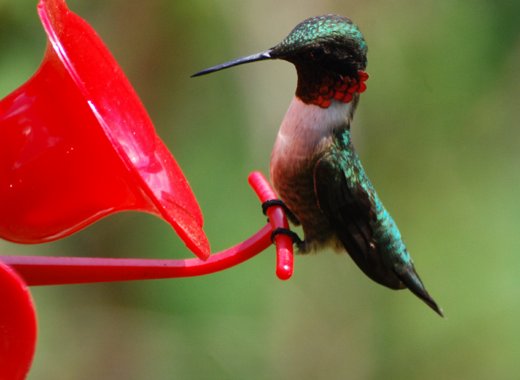 | Good shots of a male (L) and a female (R) Ruby-Throated Hummingbird