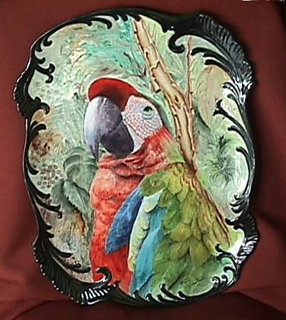 Parrot Plate Here's a beautiful porcelain plate painted by Betty Gerstner that used the above photo as a model.