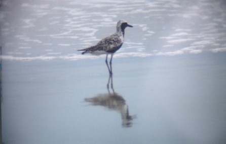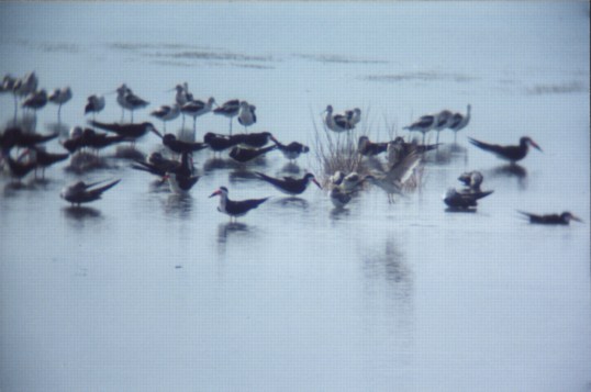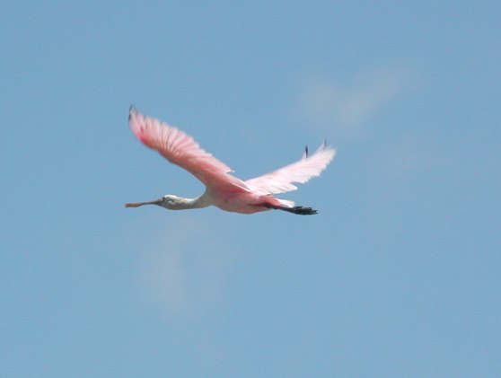 A Roseate Spoonbill in flight over a rainforest in Costa Rica. |