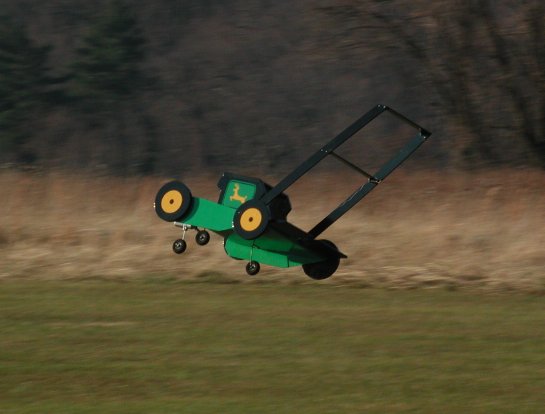 Besides propeller driven airplanes of all types and sizes, you can build and fly helicopters, gliders and jets. You can even build a flying lawnmower (see below)- it motors down the grass by itself, then takes off for the sky!
